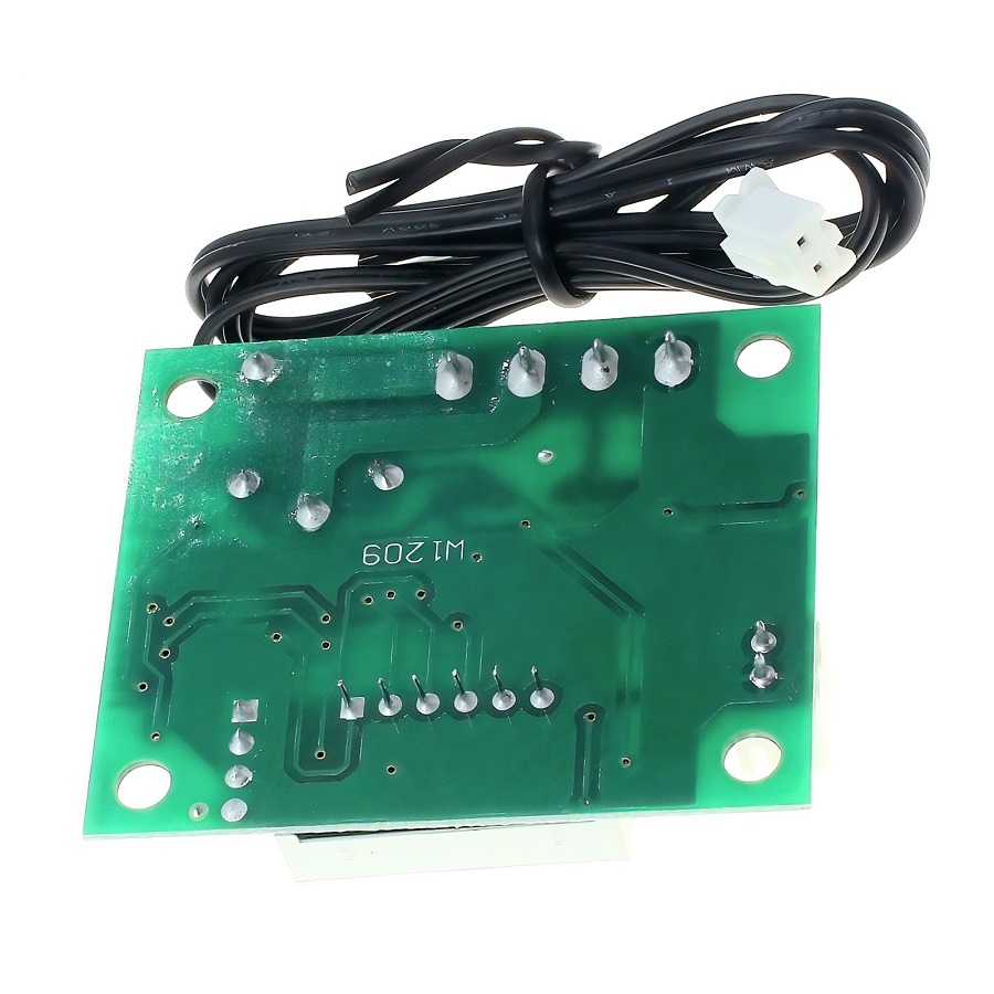 The W1209 module has three control buttons: SET, ‘+’ plus and ‘-‘ minus. If you press the SET button for 2 to 5 seconds, it will enter the menu with seven options for setting the thermostat (P0, P1, P2, P3, P4, P5 and P6).