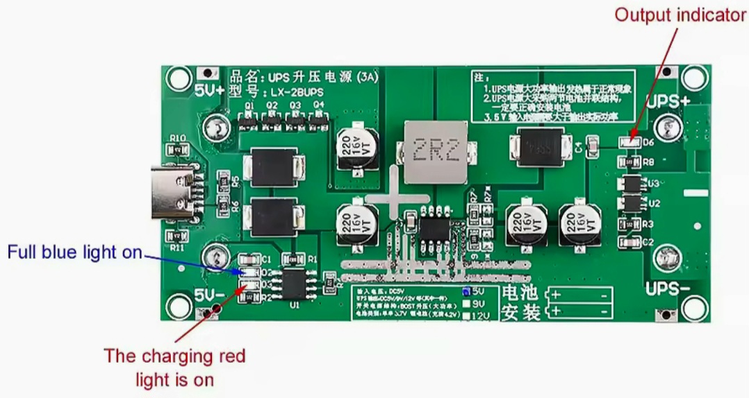 2. When used as UPS, the battery shall be installed to ensure that the input 5V power supply has sufficient power, the output shall be turned on in real time, and the battery power supply can be started at any time when the power supply is cut off.