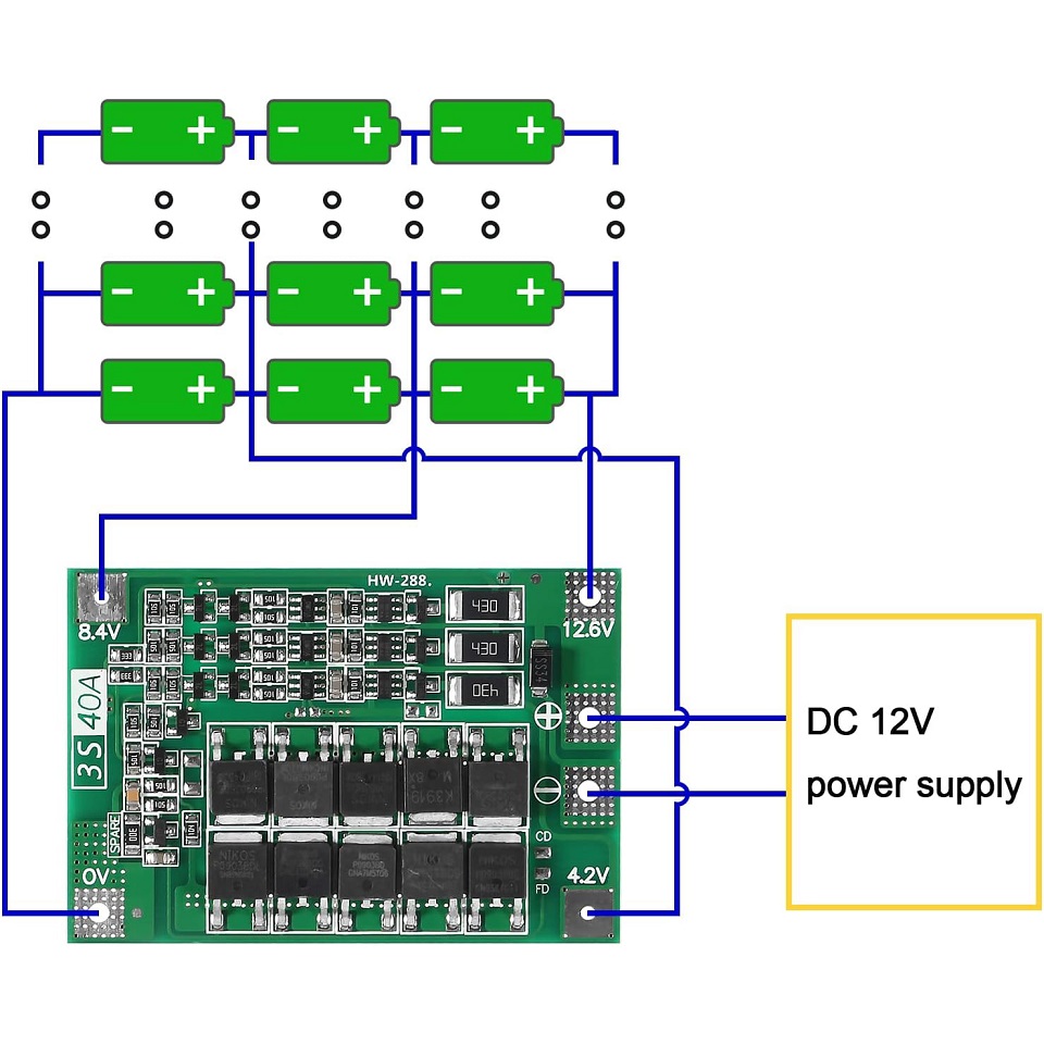 The 3 Series 40A 18650 Lithium Battery Protection Board 11.1V 12.6V with Balance for Drill Motor Lipo Cell Module comes with recovery function-AUTO Recovery and Integrated 10 low load resistance MOS tube.
