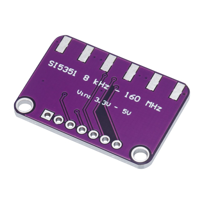 This module features a precision 25MHz crystal, PLL and internal dividers to generate almost any frequency, from 8KHz to 150+ MHz. It is compatible with microcontrollers that have I2C communication ports, for example development boards from the Arduino family.